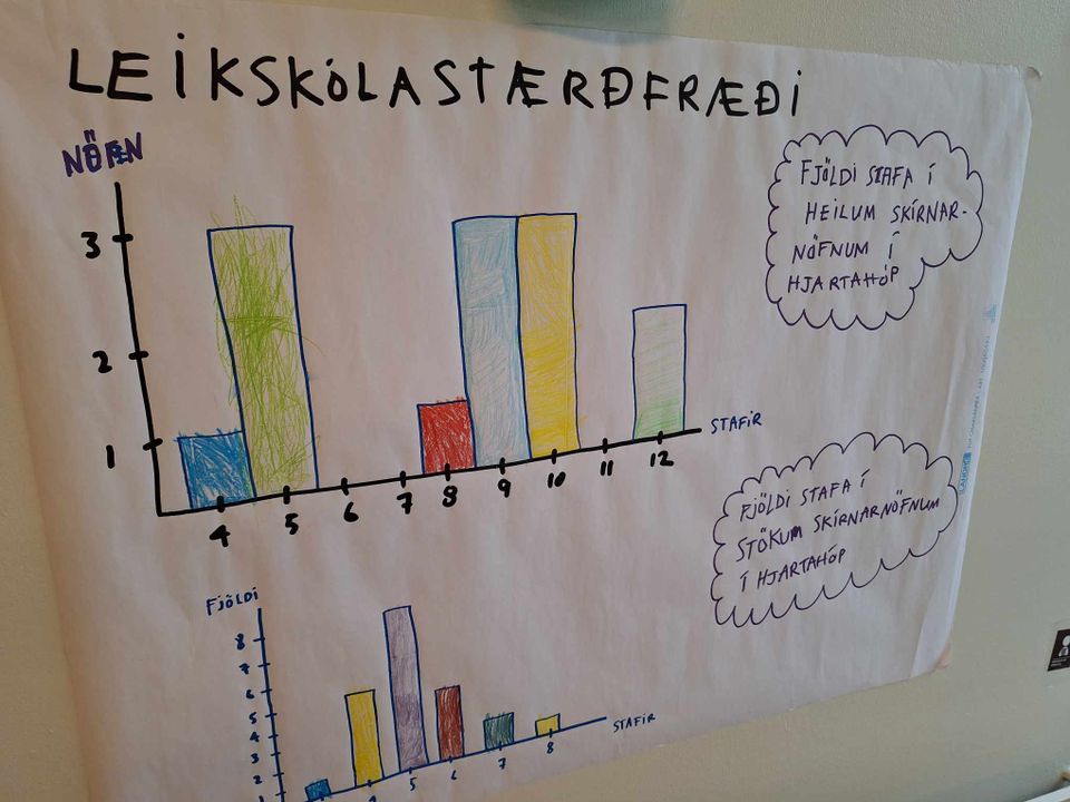 Börnin á elstu deild hafa verið að leika sér með tölfræði þessa dagana og hafa verið að skoða fjölda stafa í nöfnunum sínum og einnig kynjaskiptingu í hópunum.